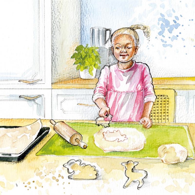 "Heute ist Karsamstag und Emma und Tante Leonie wollen kleine Osterlämmer backen. Sie möchten den Nachbarn eine Freude machen. ... Plötzlich kommt die zweijährige Ines aufgeregt in die Küche. „Daupe!“, ruft sie fröhlich und streckt ihren Finger ihrer Schwester Emma entgegen ... "