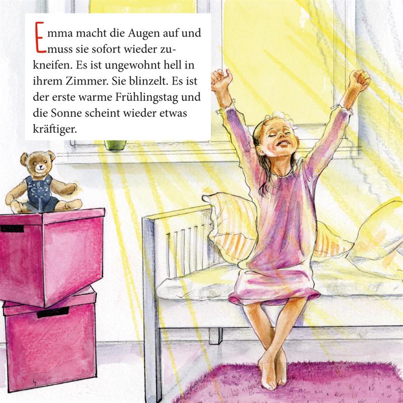 Beim Frühjahrsputz hilft die Sonne Emma und Oma Frieda, den Schmutz auf der Fensterscheibe gut zu erkennen. Danach erzählt Oma Frieda Emma, warum wir die Sonne zum Leben brauchen und warum Gott für uns wie die Sonne ist.