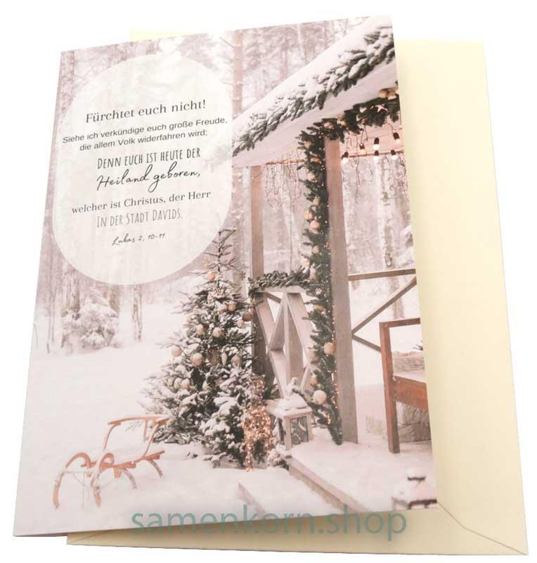 mit dem Bibelvers "Fürchtet eucht nicht! Siehe ich verkündige euch große Freude, die allem Volk widerfahren wird... Lukas 2,10-11".