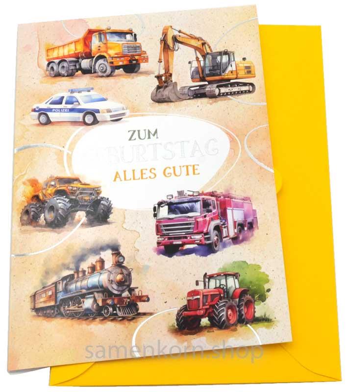 Faltkarte "Zum Geburtstag alles Gute" mit Autos