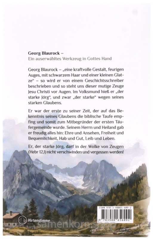 Georg Blaurock – "eine kraftvolle Gestalt, feurigen Auges, mit schwarzem Haar und einer kleinen Glatze" – so wird er von einem Geschichtsschreiber beschrieben und so steht uns dieser mutige Zeuge Jesu Christi vor Augen. Im Volksmund hieß er "der starke Jörg", und zwar "der starke" wegen seines starken Glaubens.