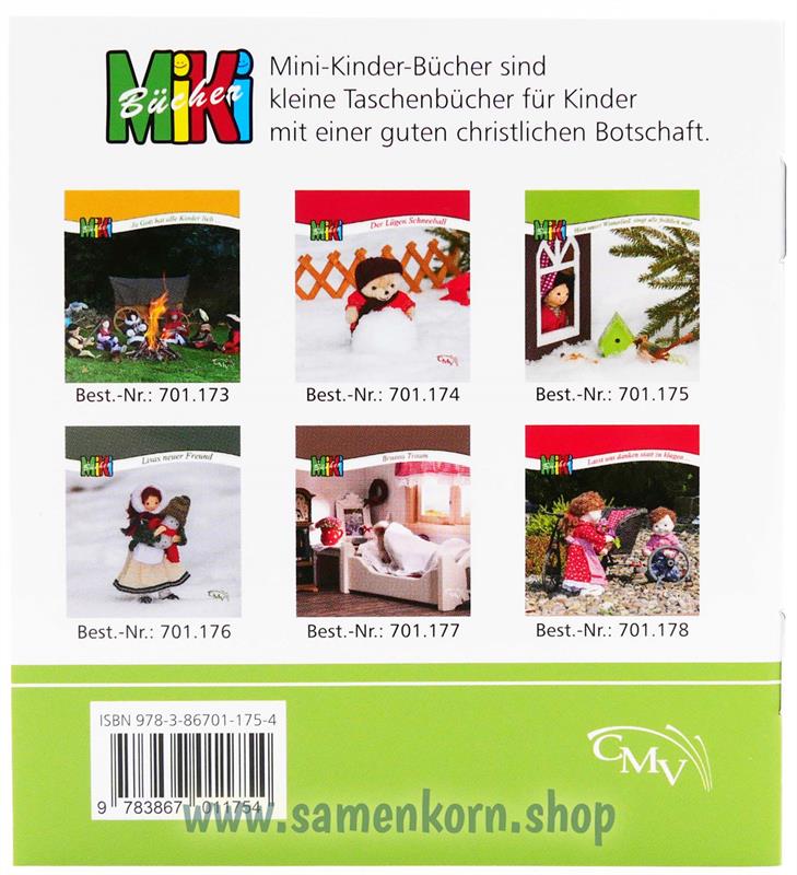 Die handlichen Heftchen der MiKi-Reihe, mit schönen Fotos illustriert, passen in jede Handtasche (10 x 11 cm) und sind ideal, um Kindern unterwegs wichtige biblisch-orientierte Impulse zu geben oder mit ihnen daraus zu singen.