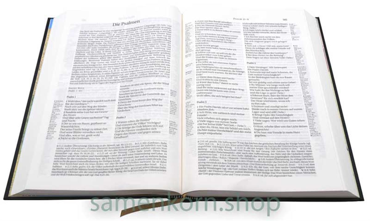 Standardbibel, Schwarz, neue Rechtschreibung mit Parallelstellen und Studienführer, Anhang und einem Bibelleseplan, Versanfänge am Zeilenbeginn.