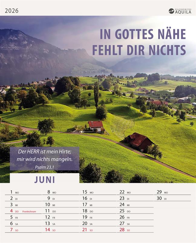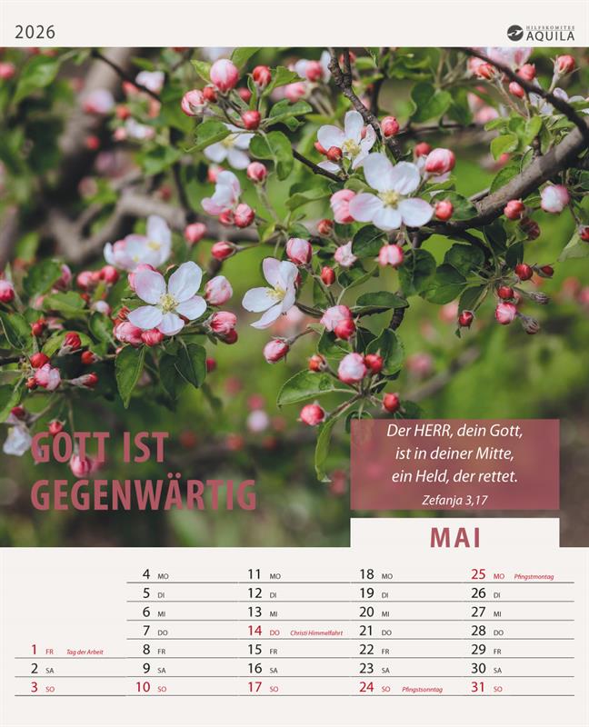 Wandkalender 2026 in Deutsch mit Fotos und Bibelversen